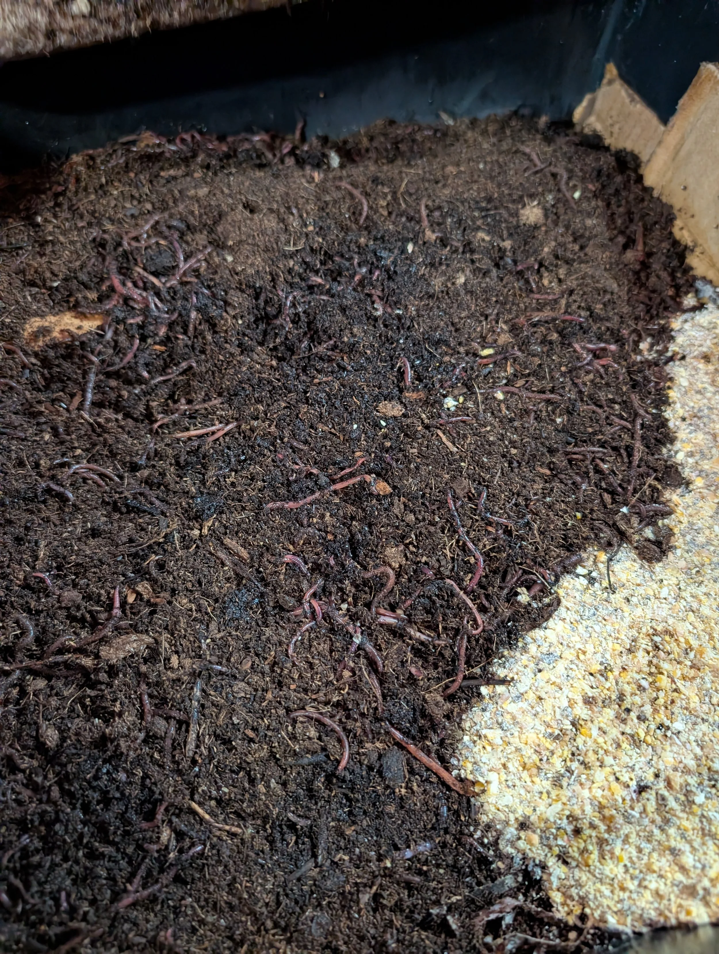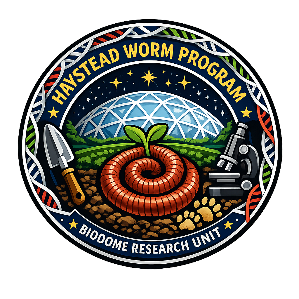 Fifty (50) Red Wiggler composting worms (Eisenia fetida) were introduced alongside composting material to initiate nutrient cycling, improve soil aeration, and support long-term microbial activity within the confined vertical soil column.