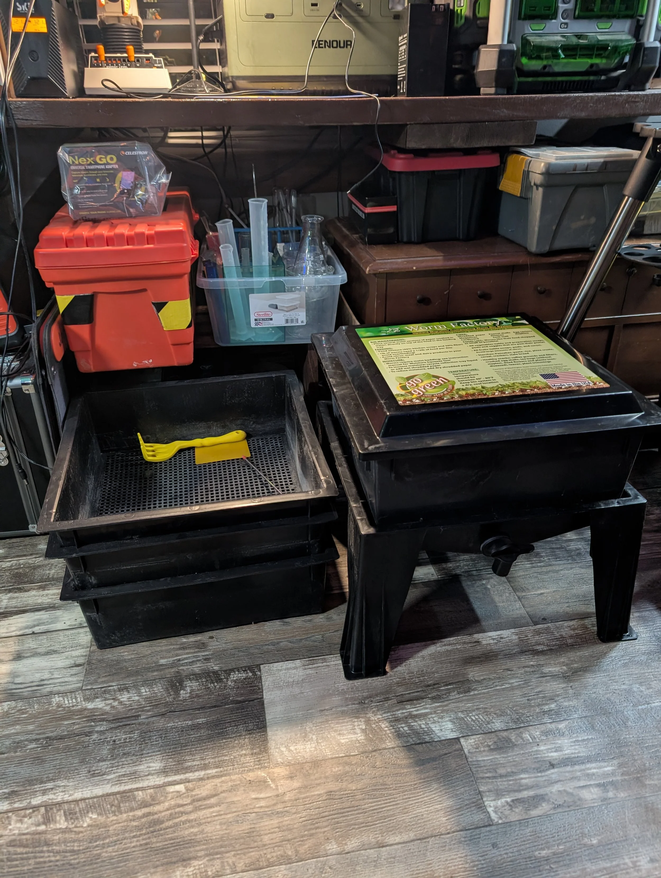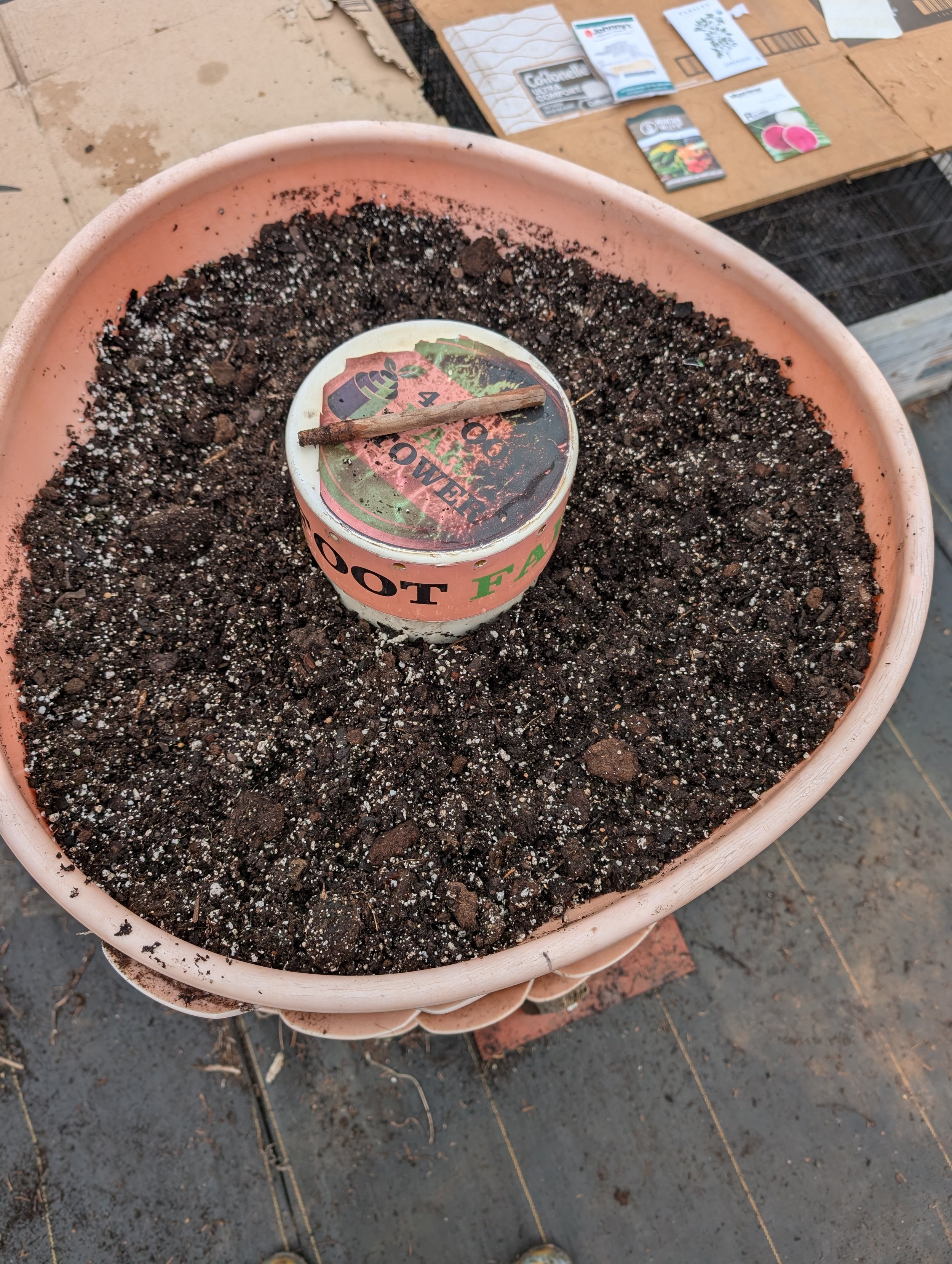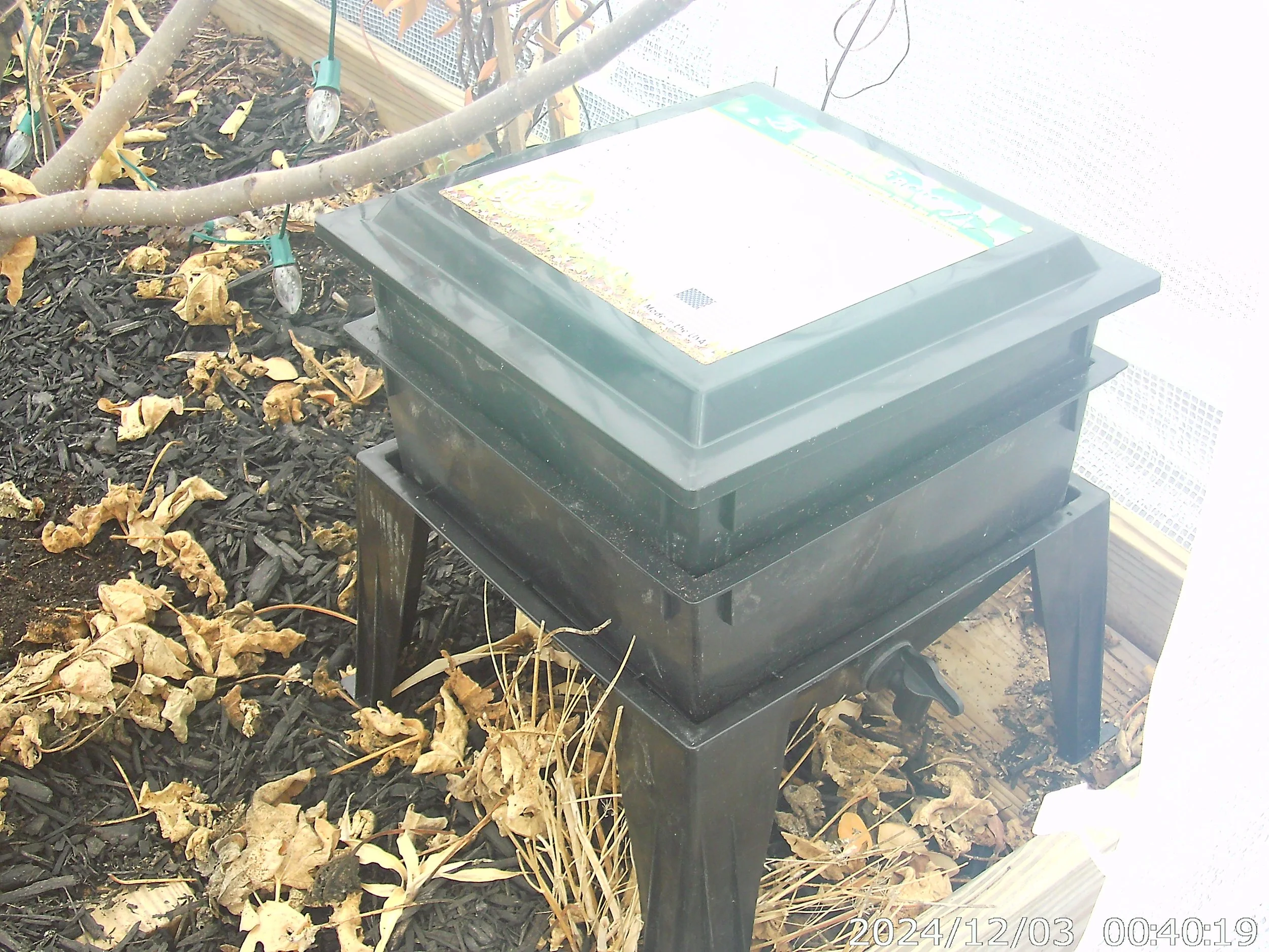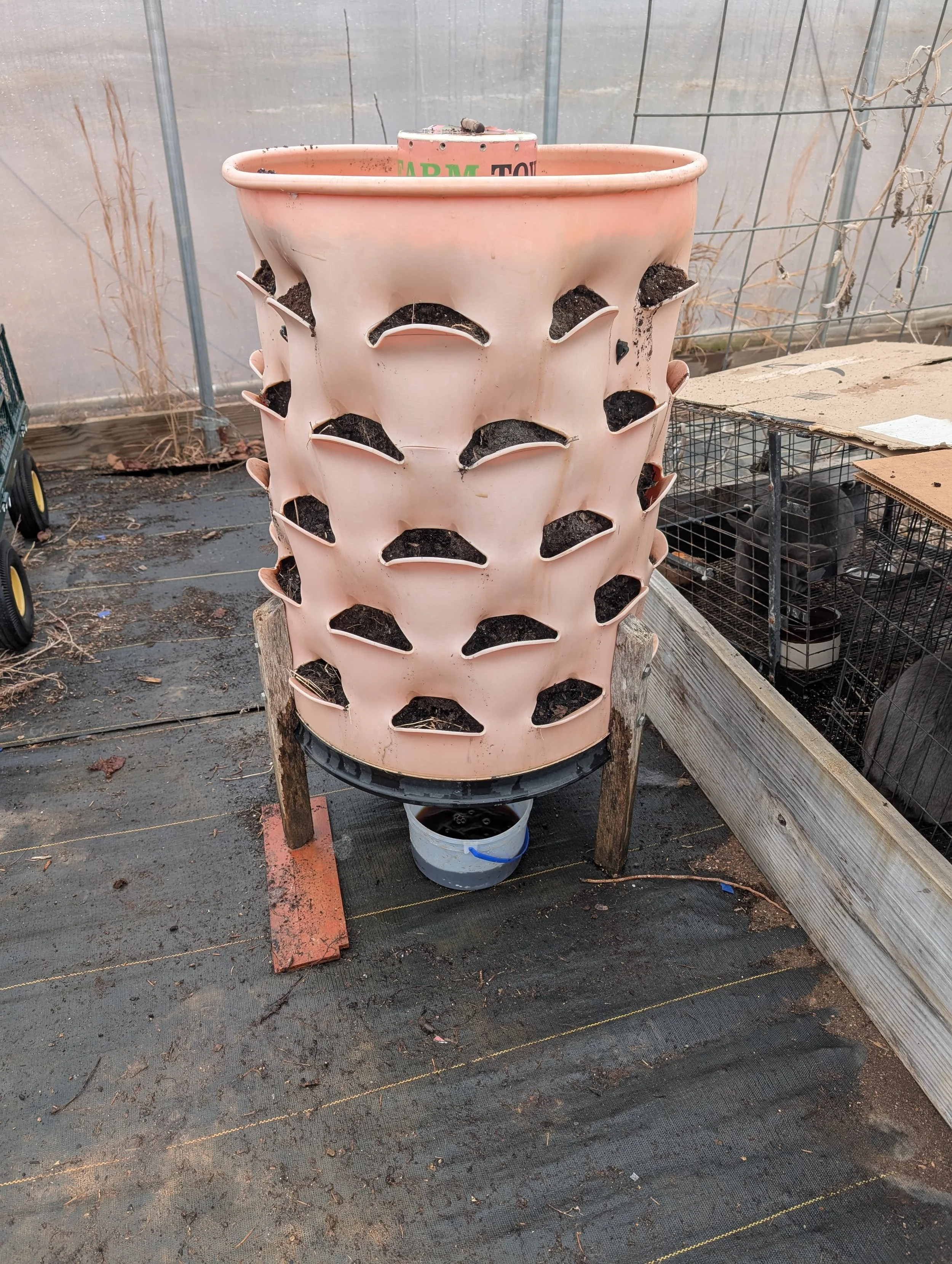 On February 12, the Vertical Garden Tower top planting tier entered biological activation phase through the introduction of composting organisms and organic substrate intended to establish a living soil ecosystem prior to seasonal planting.