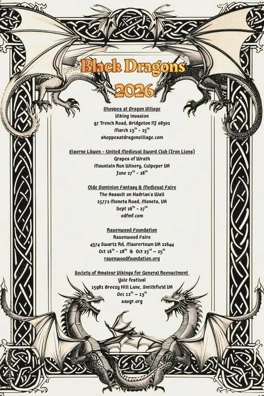 Setting up camp and taking contracts! The Black Dragons 2nd event of the year is quickly approaching. Olde Dominion Fantasy & Medieval Faire is hosting a fun little May and Faefair that we get to be apart of. As always we are looking forward to seeing everyone there!