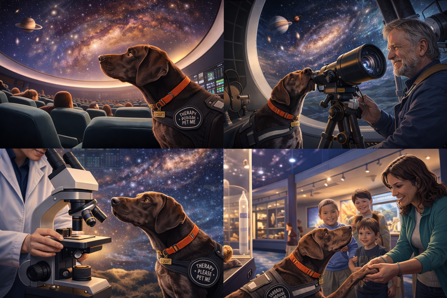 Equally comfortable in laboratories, observatories, historic encampments, or community outreach settings, Scout combines professional therapy dog service with a lifelong enthusiasm for exploration.