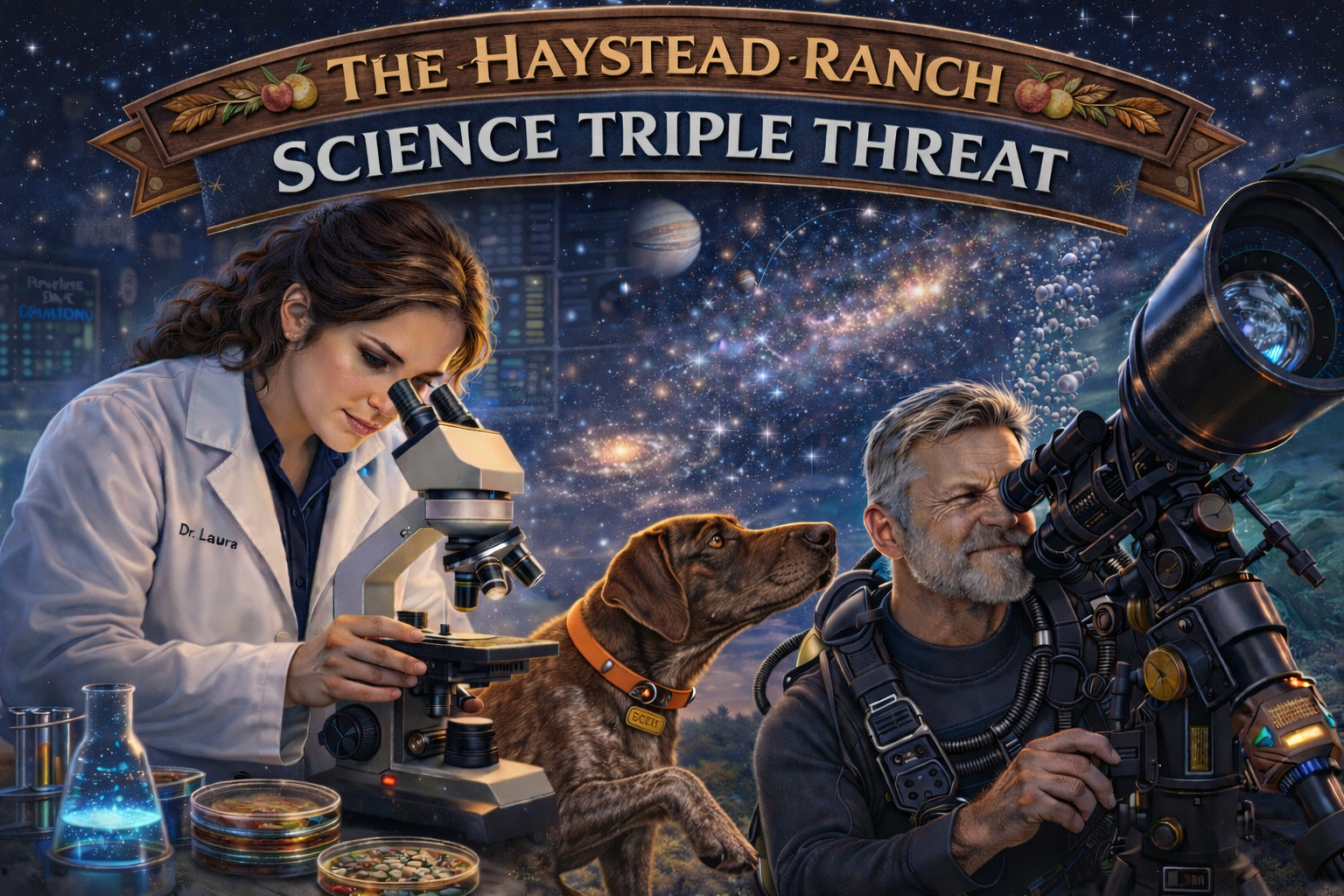 At Haystead Ranch, we believe science should be explored, experienced, and shared. Scout embodies that philosophy. She represents curiosity, friendship, and the joy of learning.